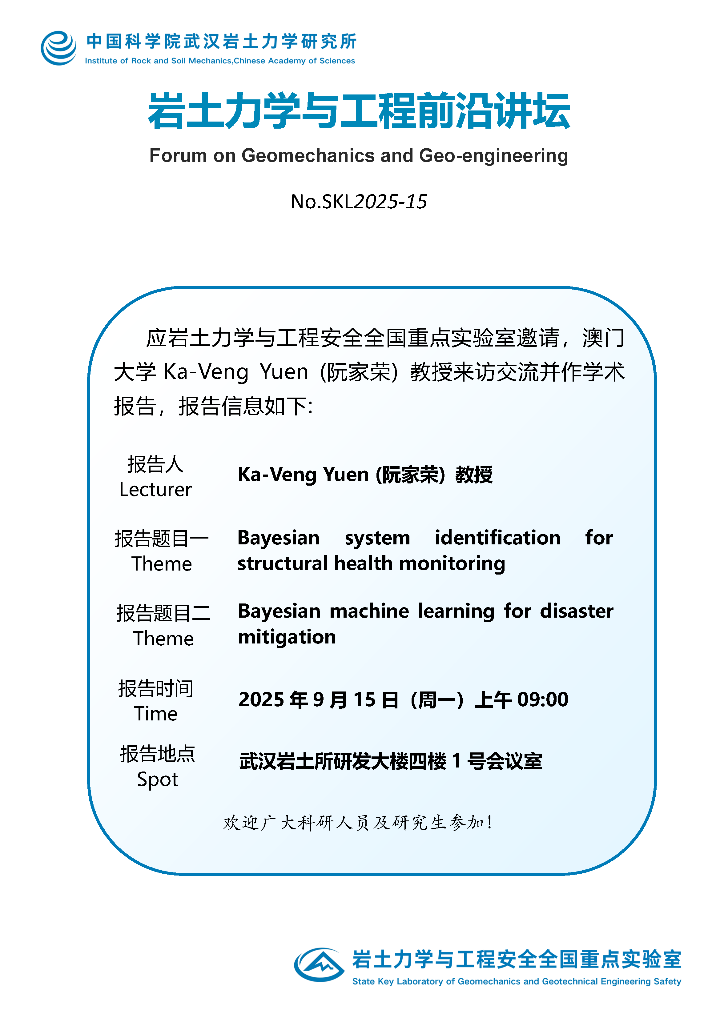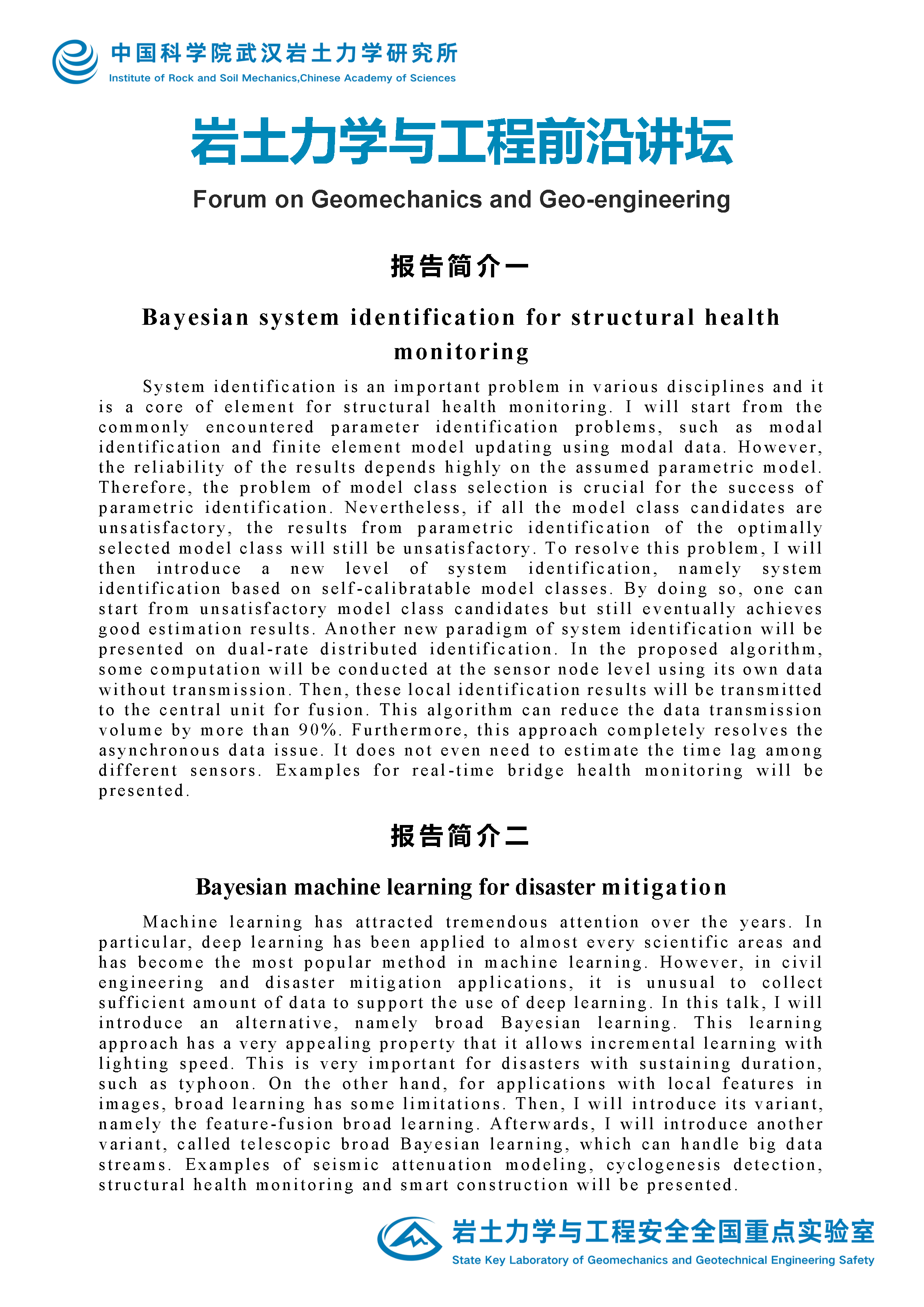 岩土力学与工程前沿讲坛——Bayesian system identification for structural health monitoring、Bayesian machine learning for disaster mitigation